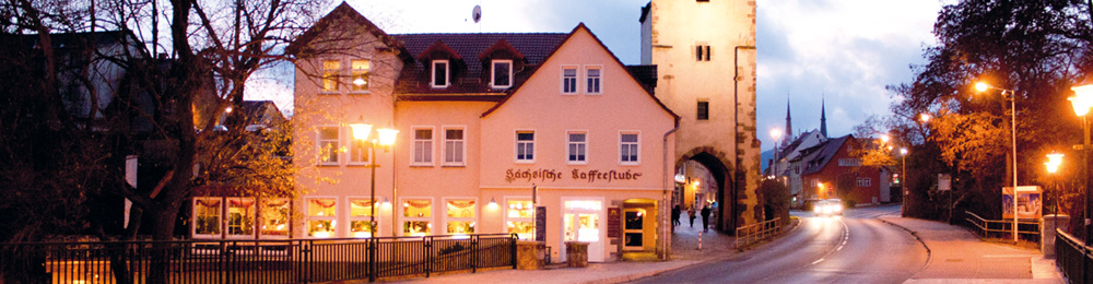 Einem der traditionsreichsten Kaffeehäuser in Saalfeld. An einem der vier Stadttore, dem Saaltor.